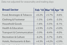 Of the eight categories monitored, six registered lower spending with only hotels, restaurants and bars, and health and...
